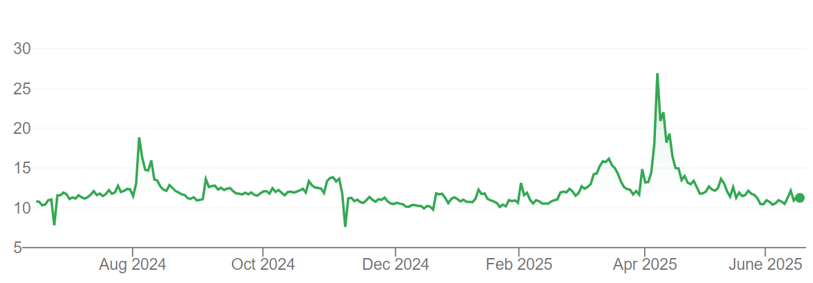 Note: S&P/ASX 200 VIX 17 June 2024 to 17 June 2025.