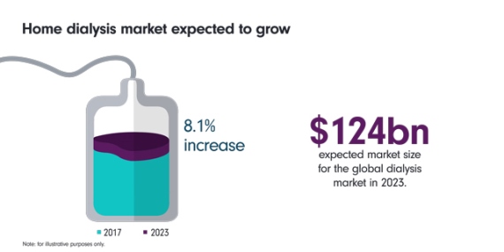 Diabetes, if left unchecked, leads to kidney problems that may require dialysis – a procedure to remove waste products and excess fluid from the blood when the kidneys stop working properly. With renal failure affecting an increasingly younger population, and with extended working lives, dialysis requiring hospital treatment could be disruptive to work and careers. Home dialysis kits offer a safe and sterile option, which could transform the way this condition is treated.
