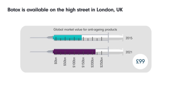 The global market for anti-ageing products was estimated to be worth $140.3 billion in 2015 and is expected to reach $216.52 billion by 2021.17