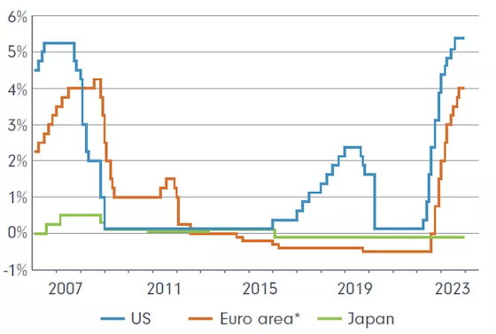 While it’s too early to declare that the inflation genie has been put back firmly into the bottle, we’re arguably edging closer to the end of the interest rate tightening cycle, with key central banks pausing rate hikes as they monitor the efficacy of rate rises on curbing inflation.