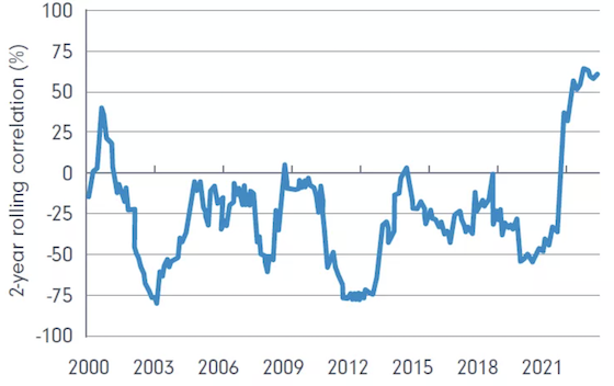 Chart 3. 2 year Rolling Correlation of US 10 Year Treasuries & the S&P 500