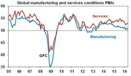 Since the global growth panic in January/February share markets and commodity prices have seen a decent rebound. and the stress in credit markets has receded. This has been helped by a combination of Fed assurances that it will not be reckless and ignore global risks in determining US interest rates, somewhat better economic data in the US and China, more monetary easing in Europe and a rebalancing in the global oil market that has allowed oil prices to stabilise which has helped reduce the risk of default by energy producers. However, the big question is whether it is sustainable or just a bounce. This note looks at the main issues.
