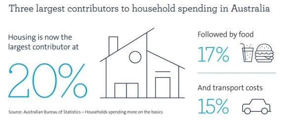 ABS figures reveal three-and-a-half decades ago the largest contributors to household spending were food (20%), transport (16%) and housing (13%), with housing now at the top of that list (20%), followed by food (17%) and transport (15%) respectively3.