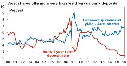 Sixth, renewed sharp falls have seen share market valuations become quite attractive. Our valuation measures for global and Australian shares have fallen back into very cheap territory. The gap between the grossed up dividend yield on Australian shares which is now nearly 7% and term deposit rates around 2.5% is back to around its highest level since the GFC.