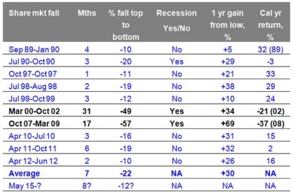 Bear markets highlighted in black. Source: Bloomberg, AMP Capital.