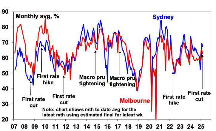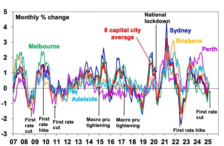 The key things to watch will be interest rates, unemployment and population growth. For example, a return to RBA rate hikes or less cuts than we are forecasting, a sharply rising trend in unemployment and a sharp slowing in net migration could result in a resumption of property price falls reflecting the divergence between home buyers’ capacity to pay and current home price levels. On the flipside a faster fall in rates on the back of weaker than expected inflation could drive a stronger upswing in property prices. And of course, Australian home prices have had a tendency to surprise economists (like me) and many others on the upside over the last few decades.