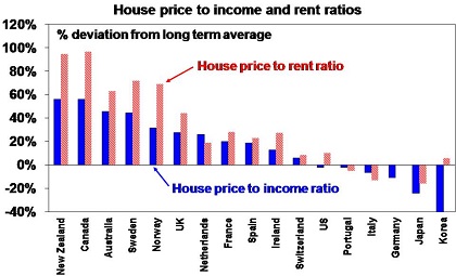 • The ratios of house prices to incomes and rents relative to their long-term averages are at the high end of OECD countries.