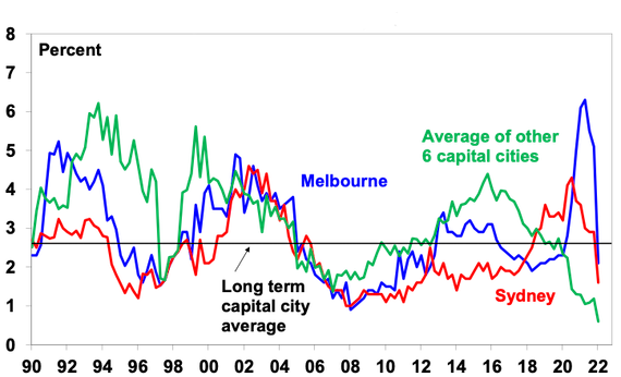 • Higher supply in Sydney and Melbourne as a result of vendors seeking to take advantage of high prices and solid construction after two years of zero immigration.