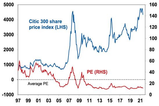 China’s policy moves towards greater government involvement in the economy are not inconsistent with trends in western countries since the GFC and the observation that the political pendulum is swinging back to the left after swinging strongly to the right with economic rationalist policies in the 1980s-2000s. Under President Biden the US will end up with a bigger government sector, while the last Australian Budget projected Federal spending stabilising at a level of GDP well above pre-pandemic norms. Western countries are also considering regulatory action against big tech. But of course, China is a communist country and a one-party state so its swing to the left seems more noticeable, particularly at time of geopolitical tensions with western countries.