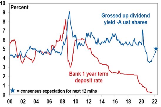 Fifth, Australian shares are offering a very attractive dividend yield compared to banks deposits. While resource stocks dividend payments may have peaked for a while following the plunge in iron ore prices, they’re unlikely to fall back much as they didn’t go up as much as earnings and high prices for gas, coal and metals are providing some offset. So, the income flow you are receiving from a well-diversified portfolio of shares is likely to remain attractive, particularly against bank deposits.
