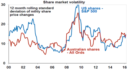 After a period of relative calm over 2012-2014 share market volatility has spiked over the last year as various worries about the global growth outlook intensified. With this renewed volatility a focus on risk in investing and a desire for safety has naturally come. But what is volatility? What drives it? Why does it come in cycles? Where are we now? And is it the same thing as risk?
