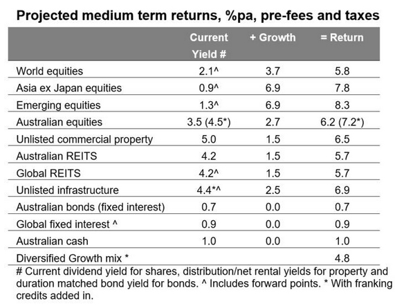 • For unlisted infrastructure, we use current average yields and capital growth just ahead of inflation.