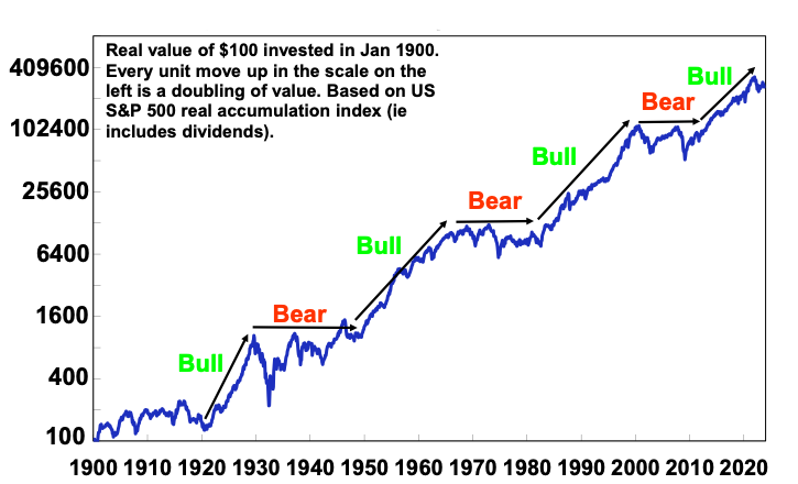Long term bull and bear phases in US shares