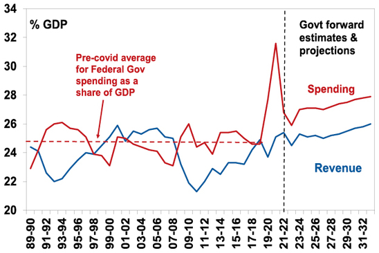 The reaction to the inflationary malaise of the 1970s was the economic rationalist policies of Margaret Thatcher, Ronald Reagan and Bob Hawke and Paul Keating in Australia. These focussed on boosting the ability of the economy to supply goods and services by: limiting government involvement in the economy through policies such as deregulation and privatisation; policies to boost competition; measures to boost incentives by lowering tax rates; and labour market reform to make labour markets more flexible. This all helped lower inflation. Now as a result of the problems highlighted by the GFC, rising inequality, stagnant wages, aging populations, climate concerns and a collective memory loss regarding the lessons of the past there is a backlash against economic rationalist policies and more support for government intervention in the economy. It’s evident in Australia, for example, with the rising trend in government spending and revenue as a share of the economy, widespread pressure to raise taxes, together with measures to return to multi-industry bargaining within the labour market. The risk is that greater government involvement in the economy leads to lower productivity growth which will hamper the supply side of the economy and add to inflationary pressure.
