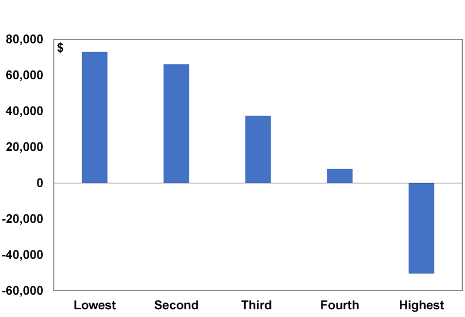 Government benefits less taxes paid by household income groups, 2021-22