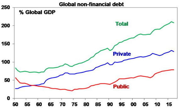 There is no denying these concerns. Debt is at record levels globally. QE has been running in various iterations for more than a decade now in some countries. Inequality is up – albeit its mainly a US and emerging country issue. Support for market-friendly economic rationalist policies such as globalisation, deregulation and privatisation seems to have waned (except in France). And geopolitical risks are up. All these developments point to the risk of slower global growth and investment returns ahead and may figure in the next major bear market. But there is always something to worry about (otherwise shares would offer no return advantage over cash) and trying to time the next downturn is hard. Moreover, there are five reasons not to get too fussed about the global outlook.