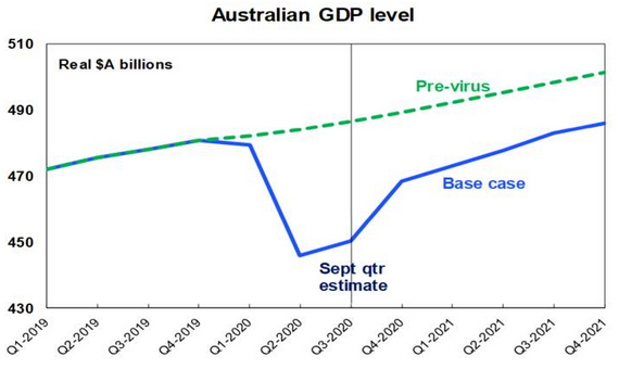 The Australian economy looks to be following a similar pattern, although the initial recovery has been slowed through the September quarter by Victoria’s hard lockdown. As a result, we only expect 1% or so growth in the September quarter, but a stronger rebound in the December quarter as Victoria reopens. Our forecasts for the level of real Australian GDP are shown in the next chart. Note that while a return to growth in the September quarter will mean that technically the recession is over – this really is just a technicality because the level of activity will still be a long way below its pre-coronavirus level.