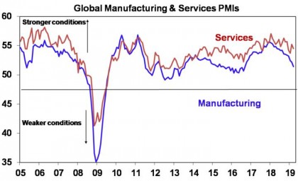 The past week has seen a renewed intensification of concerns about global growth. Bond yields have plunged and associated growth worries have weighed on share markets. This note looks at the global growth outlook, why shares are vulnerable to a pullback and why it’s unlikely to be a resumption of last year’s downtrend.