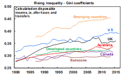 The issue of rising inequality has seen increasing interest over the last year or so, particularly following the Brexit and Trump votes for which rising inequality was seen as a key driver. This is an issue we have looked at before in terms of driving a swing to the left amongst median voters in Anglo countries and contributing to a backlash against economic rationalist policies (see “The political pendulum swings to the left”, Oliver’s Insights, June 2016 (http://bit.ly/1UWCUX1) but this note takes a more detailed look at the economic and investment implications.