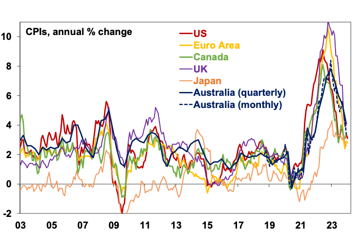 Global and Australian growth has held up far better than expected a year ago helped by a combination of savings buffers built up through the pandemic, reopening boosts, resilient labour markets and in Australia far stronger than expected population growth (which has masked a per capita recession). Consequently, while global and Australian growth has slowed it has remained positive. Our base case is for a further softening in growth but for it to remain positive ahead of lower interest rates providing a boost from later this year.