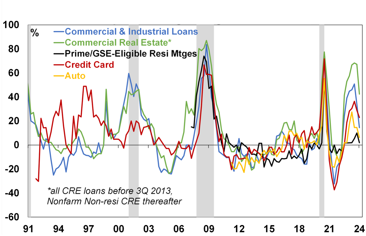 Quick action by US and Swiss authorities settled the banking problems seen last year and the tightening in lending standards associated with it has eased. In the US, the Fed’s December quarter bank lending survey showed less tightening in lending standards and loan demand becoming less negative, which suggests an easing in regional banking problems. But with monetary policy still tight and ongoing falls in commercial property values the problems could return – as seen with New York Community Bank and Japan’s Aozora Bank recently. So, it’s worth watching.