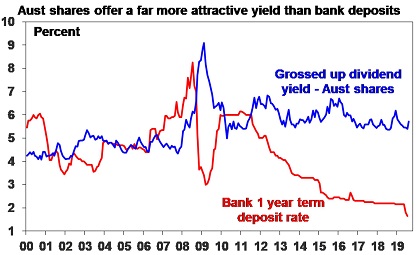 There are a number of implications for investors. First, bank deposit rates are likely to fall even further and remain unattractive for a lengthy period yet. Second, the low interest rate environment means the chase for yield is likely to continue supporting commercial property, infrastructure and shares offering sustainable high dividends. The grossed-up yield on shares remains far superior to the yield on bank deposits. Investors need to consider what is most important – getting a decent income flow from their investment or absolute stability in the capital value of that investment.