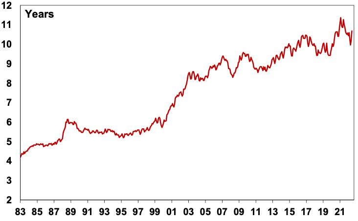 Yes, interest rates are still lower than was the case in the 1980s and 1990s, but this has been reflected in higher price to income ratios. Another measure related to housing affordability is how long it takes to save for a deposit to enter the property market. For someone on average full-time earnings it now takes around 10 years to save a 20% deposit to buy an average property compared to around five years thirty years ago.