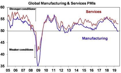 Second, policy stimulus is being ramped up: with numerous central banks now cutting interest rates and indicating that more cuts are on the way including from the Fed; the ECB looks like it will soon return to quantitative easing; Chinese economic policy meetings indicate that more policy easing is on the way; Germany is reportedly thinking about some sort of fiscal stimulus; and there is talk of more US tax cuts. This is very different to last year when the Fed was tightening, the ECB ended QE and other central banks including the RBA looked to be edging towards tightening.