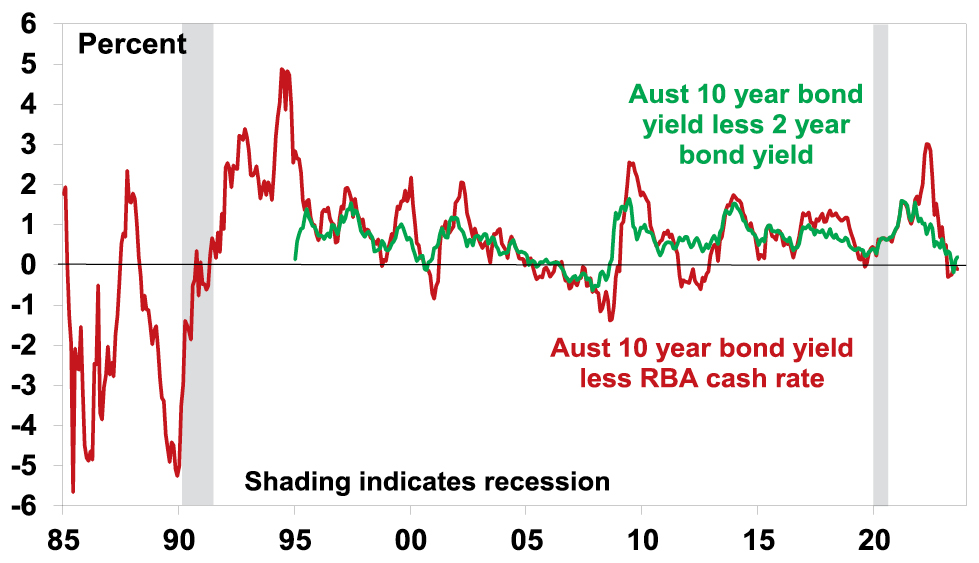 Inverted yields curves have been a poor indicator of recession since 1991 in Australia and right now it’s not decisively inverted anyway.