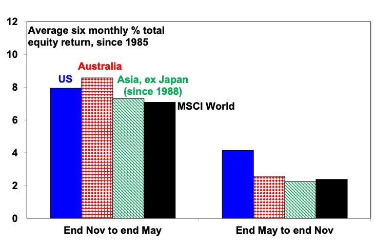 Coming out of the roughly 10% correction into October last year, share markets saw strong gains on hopes that lower inflation will allow central banks to cut interest rates and as global profits have remained strong. The going seems to have become tougher though with share markets falling in April amidst interest rate and geopolitical concerns begging the question as to whether it’s maybe now time to “sell in May and go away” given the old saying, in reference to seasonal patterns in shares.