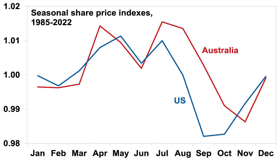 • Finally, the period from May to September is often rough for shares albeit with a bounce along the way in July (particularly in Australia).