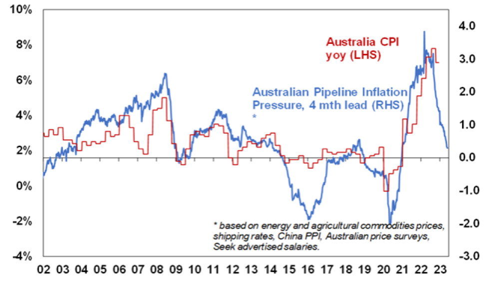 Reflecting this along with other indicators our Pipeline Inflation Indicators for the US and Australia have continued to fall pointing to a further decline inflation ahead. If correct this will provide scope for central banks to ease monetary policy later this year or early next.
