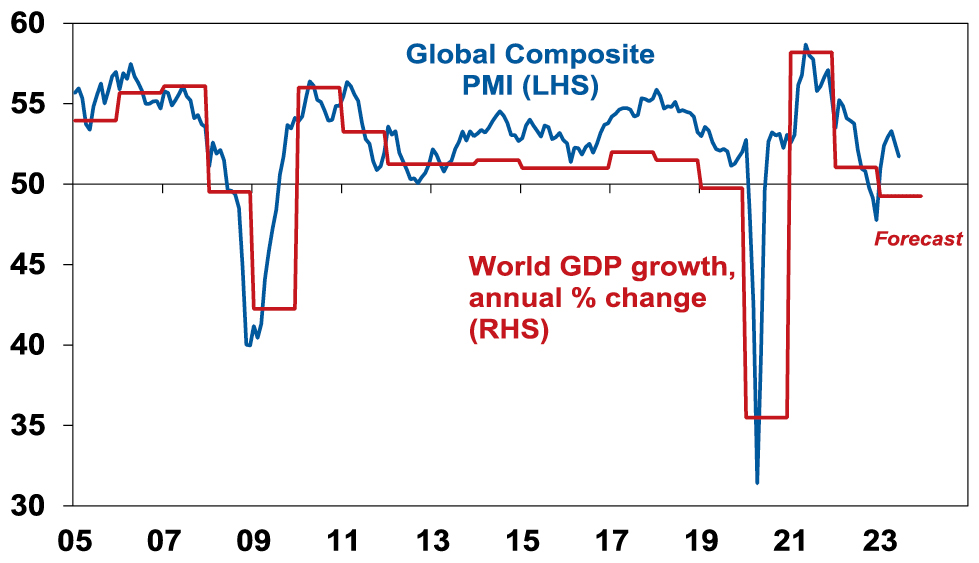 A big determinant of whether share markets can continue to move higher or resume the bear market in US and global shares that started last year, will be whether major economies slide into recession and, if so, how deep that is. Our assessment is that the risk of a mild recession is high (particularly in Australia), but that at least a deep recession should be avoided. Global business conditions indexes (PMIs) – which are surveys of purchasing managers at businesses – will be a key warning indicator.