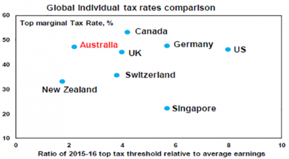 This is an upbeat Budget. First the near-term tax cuts for low to middle income earners will help households at a time of soft wages growth, falling home prices and tightening lending standards. This will be very small though at $10 a week (a sandwich and milkshake!) and will be slightly dampened because the majority of the benefit will come when taxpayers do their 2018-19 tax return sometime after June next year. Second, the Budget recognises that we cannot rely on bracket creep to cut public debt. The Australian tax system is already highly progressive and is becoming more so with the top 10% of earners accounting for 45% of income tax revenue, up from 36% two decades ago. Compared to other comparable countries the top marginal tax rate is both relatively high and kicks in at a relatively low multiple of average earnings. If this is not limited it risks dampening incentive and productivity. Third, the continuing focus on infrastructure is good for short term growth, productivity and “crowding in” private investment. It will help to keep the economy growing.