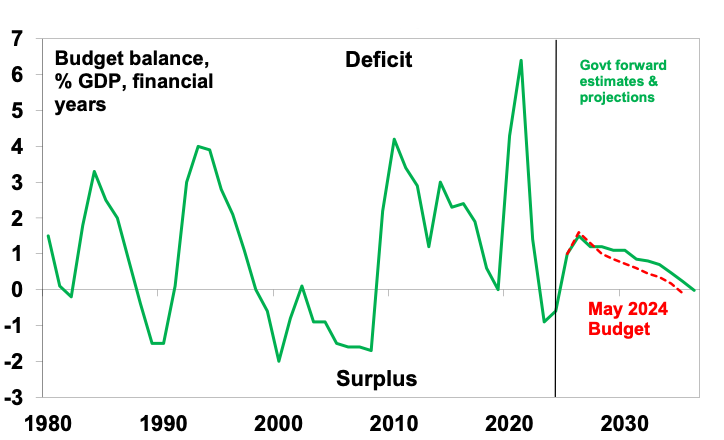 • Structural deficits. The Budget continues to lock in structural budget deficits. This sees no money put aside for a rainy day over the forecast period. The ratcheting up of spending on temporary revenue windfalls (amounting to over $300bn for the current Government) leaves the budget vulnerable to a reversal of the windfalls.