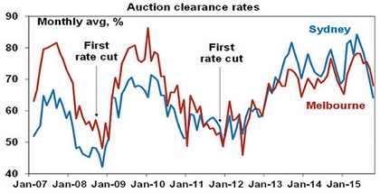 Nationwide price falls are unlikely until the RBA starts to raise interest rates and this is unlikely before 2017. And then in the absence of a recession or rapid interest rate hikes price falls are more likely to be 5-10% as was seen in the 2009 and 2011 down cycles than anything worse. In fact, the cooling in investor demand in Sydney and Melbourne are likely to provide greater flexibility for the RBA to cut interest rates again.