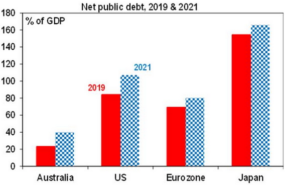 It’s not ideal, but it is affordable. First, it needs to be stressed that the stimulus is absolutely necessary. If the Government hadn’t imposed the lockdown the healthcare system could have been overwhelmed resulting in many more deaths than the 97 recorded so far. Australia has seen 4 deaths per million people, but the UK and Italy have seen around 500 deaths per million and if that had occurred in Australia it would mean the deaths of around 12,500 people. And if the Government along with the RBA and state governments had not moved to protect jobs, businesses and incomes, the prospective hit to the economy from the lockdown would be far greater, with a much slower recovery in prospect (and probably an even bigger blow out in the budget and public debt). Looked at another way the 10% or so hit to the economy this half year required a similarly sized stimulus program to offset it.