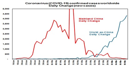 Coronavirus continues to rattle investment markets as the number of new cases outside China continues to rise posing increasing uncertainty over the impact on economic activity. And its impact has intensified following the collapse of OPEC discipline causing a further plunge in oil prices raising concerns about debt servicing for oil producers. From their highs global shares and Australian shares have had a fall of around 20%.