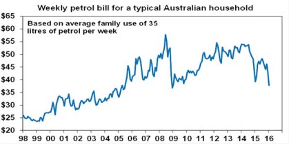 Current levels for the average petrol price of around $1.10/litre represent a saving for the average family petrol budget of around $14 a week compared to two years ago, which is a saving of $750 a year. Some of this saving will likely be spent.
