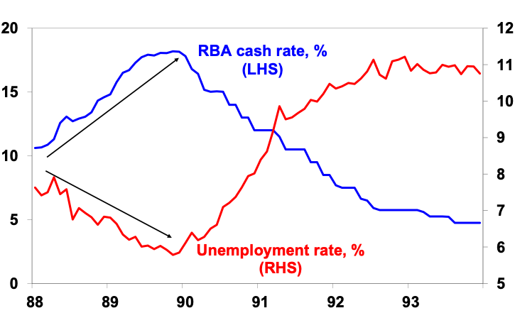 RBA rate hikes & unemployment in the late 1980s/early 1990s