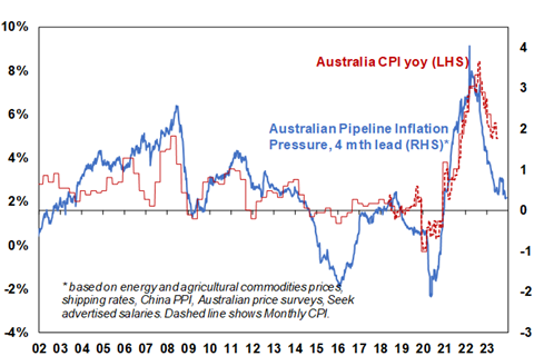 Consistent with this, our Australian Pipeline Inflation Indicator points to a further fall in inflation ahead.