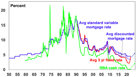 It’s true that the rate hike will add to “cost pressures” facing households with a mortgage. But tightening monetary policy by raising the cost of borrowing (or money) in order to slow demand growth relative to supply in the economy is one of the few levers policy makers have in the short-term to reduce inflation. Much of the surge in inflation owes to pandemic distortions to global supply and goods demand, made worse by the war in Ukraine and the recent floods, which may reverse to some degree at some point. And the RBA can’t do much about supply constraints. But it had no choice but to act to increase the cost of money from near zero. First, having a near zero cash rate when unemployment is 4% and inflation is over 5% makes no sense. Second, the experience from the late 1970s tells us the longer high inflation persists the more inflation expectations will rise making it even harder to get inflation down again without a recession. Thirdly, the global backdrop now of bigger government, a long period of ultra-easy monetary policy and big budget deficits, the reversal in globalisation and the demographic decline in workers relative to consumers, all point to a transition from the falling and low inflation world of the last 30-40 years to structurally higher inflation. Finally, waiting till after the election would have left the RBA vulnerable to criticism that it was influenced politically, which could call into question its independence and further dent its credibility.