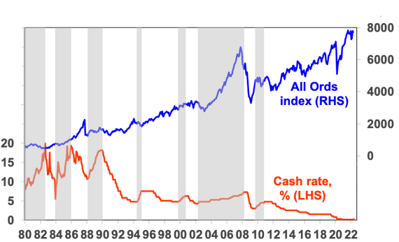 Ambiguous relationship between Aust interest rates and shares