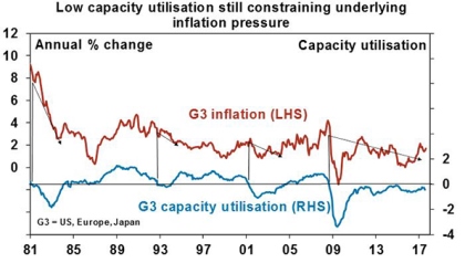 As a result, global monetary conditions remain easy and without a surge in inflation look likely to remain so. The Fed is continuing to tighten but it’s “gradual” and from a very easy base and other central banks (including the RBA) are on hold. A shift to tight money that brings about a global economic downturn looks a fair way off.